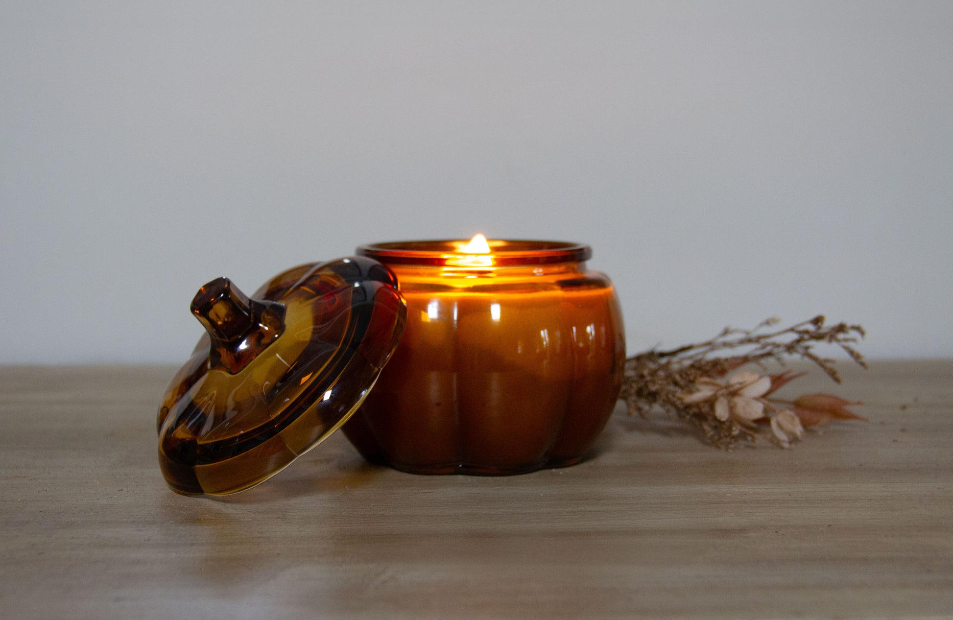 Housed in a warm amber pumpkin-shaped jar, this candle brings the perfect blend of autumn charm and sophistication. The fragrance is a combination of velvety white musk and golden maple adds a rich, sweet depth.